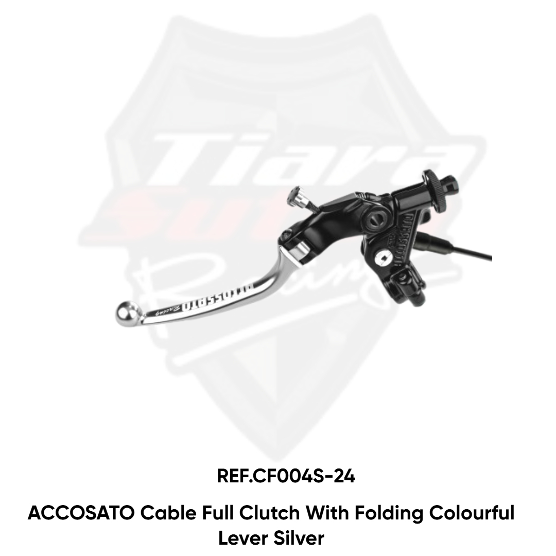 The Accossato cable clutch is one of a kind: it has a “click” adjustment of the cable, the cable clutch is the one and only Provided with distance adjuster between the handle and the grip. The adjusting knob is the same colour of the Lever. The Lever is folding, made in aluminium, CNC-worked And anodyzed in many colours. The length is standard and can be Provided with lightening eyelet (RST) or without (NRST). The adjusting knob is the same colour of the Lever. Distances available: 24 mm – 29 mm – 32 mm – 34 mm. In order to select the most accurate distance for your needs, it is recommended to first check the current distance in use and evaluate if keeping, increasing or descreasing it. With a longer distance, with the same movement of the Lever, you’ll have a longer cable recovery: the clutch will be released earlier but, the strenght needed to activate the Lever wil be higher. With a shorter distance, with the same movement of the Lever, You’ll have a shorter cable recovery: the clutch will release with a stronger movement and the strenght needed to activate the Lever will be lower. Il micro switch is included. The mirror holder is not included and you can buy it separately with codes MH005 o MH006.