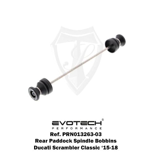 EP Paddock Stand Bobbins for the Ducati Scrambler Classic is the right choice for day-to-day maintenance and upright storage of your motorcycle. Easily fitted through the rear wheel spindle using a rolled-thread spindle rod, EP’s specifically shaped Paddock Stand Bobbins suit either C-cup or V-type mounts to securely lift the rear wheel. Evotech Performance have chosen robust materials of injection-moulded nylon, stainless steel and aluminium inners to steady and support the weight of your motorcycle.