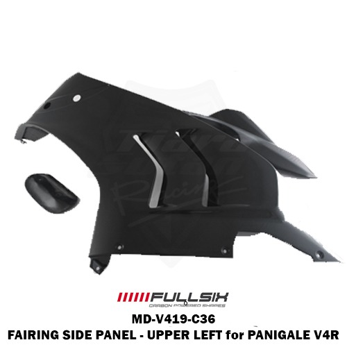 The FAIRING SIDE PANEL – UPPER LEFT for DUCATI Panigale V4R is a carbon fiber component that replaces the OEM part and enhances both the visual appearance and performance of your motorcycle. See below for which materials and surface treatments are available.