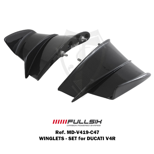 The WINGLETS – SET for DUCATI V4R are carbon fiber components that replaces the OEM part and enhances both the visual appearance and performance of your motorcycle. See below for which materials and surface treatments are available.