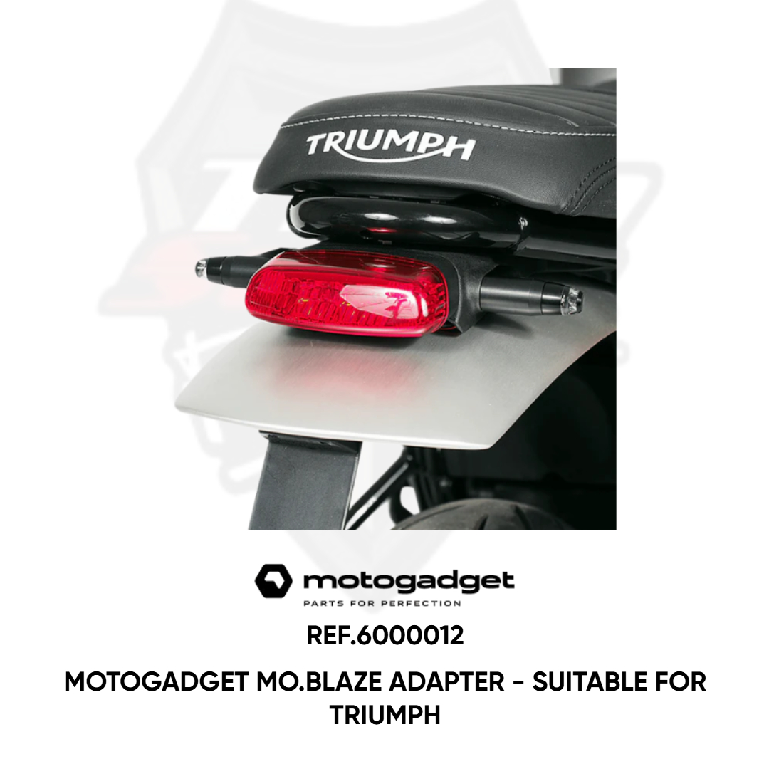 The shape of the adapter fits precisely on the original mount of Triumph motorcycles and is fastened with the stainless steel screw supplied. The indicators are pushed into the hole in the adapter and secured with the grub screw. The adapters are CNC-milled from aluminium and anodized black. They fit both front and rear.